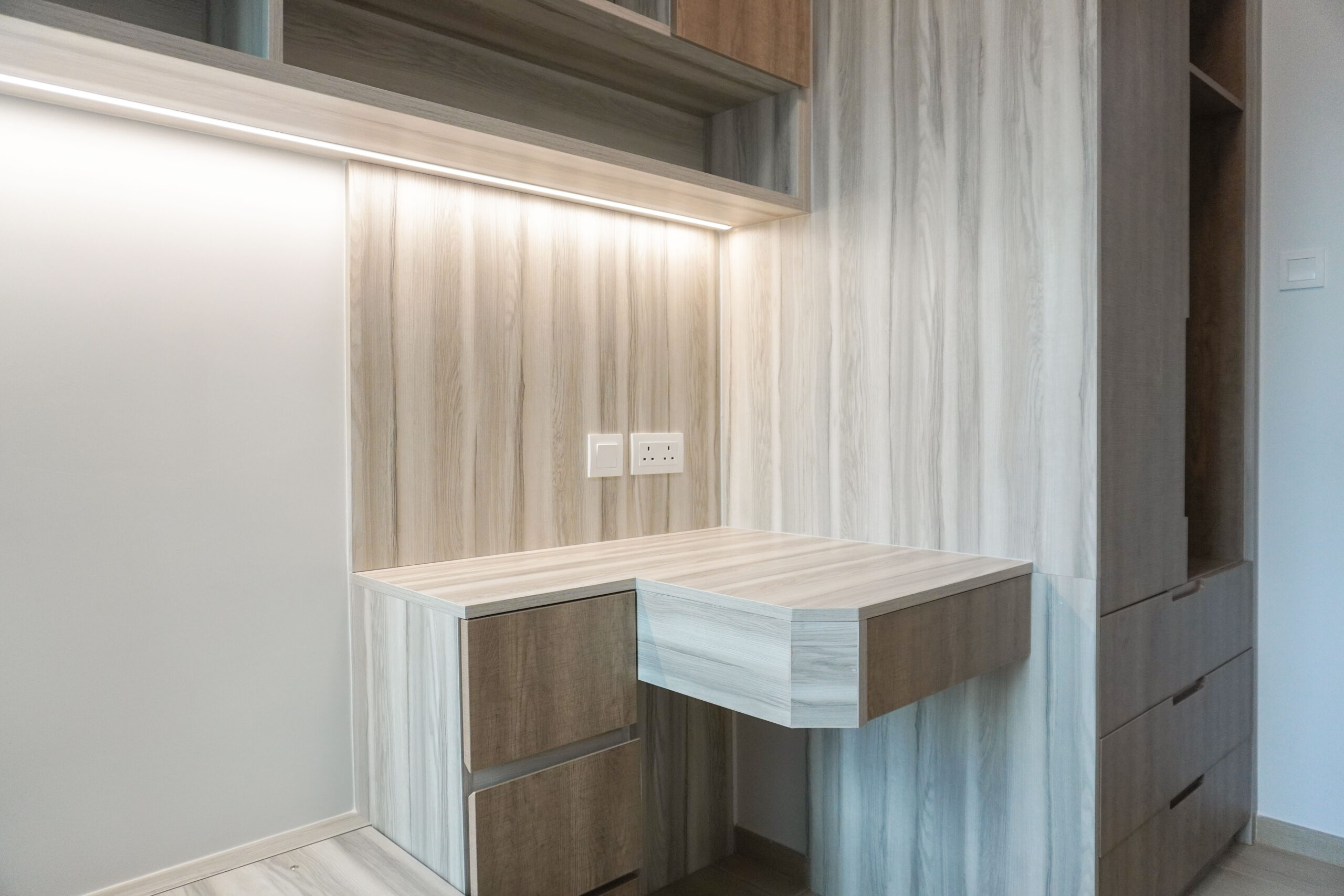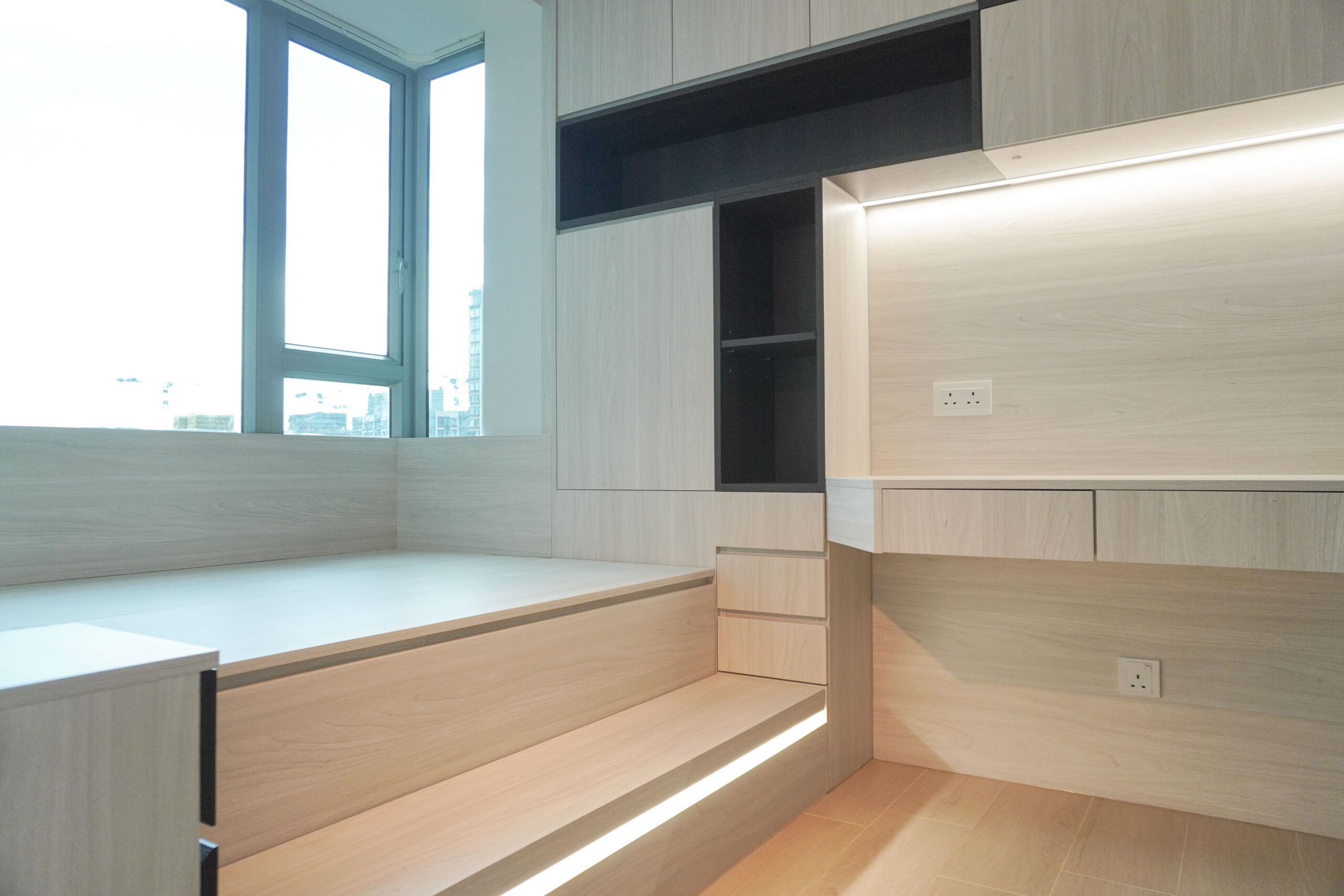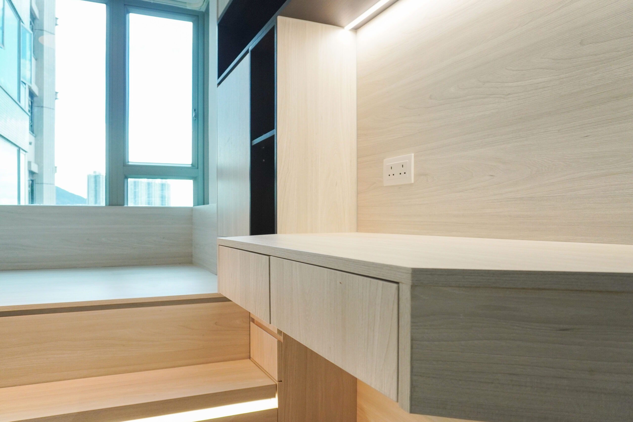 每間房間的面積大小不同,因應唔同限制,為各個睡房設計型態不一的書枱,除了能迎合到屋主的需要外,同時增加整體美觀性。